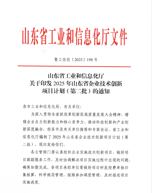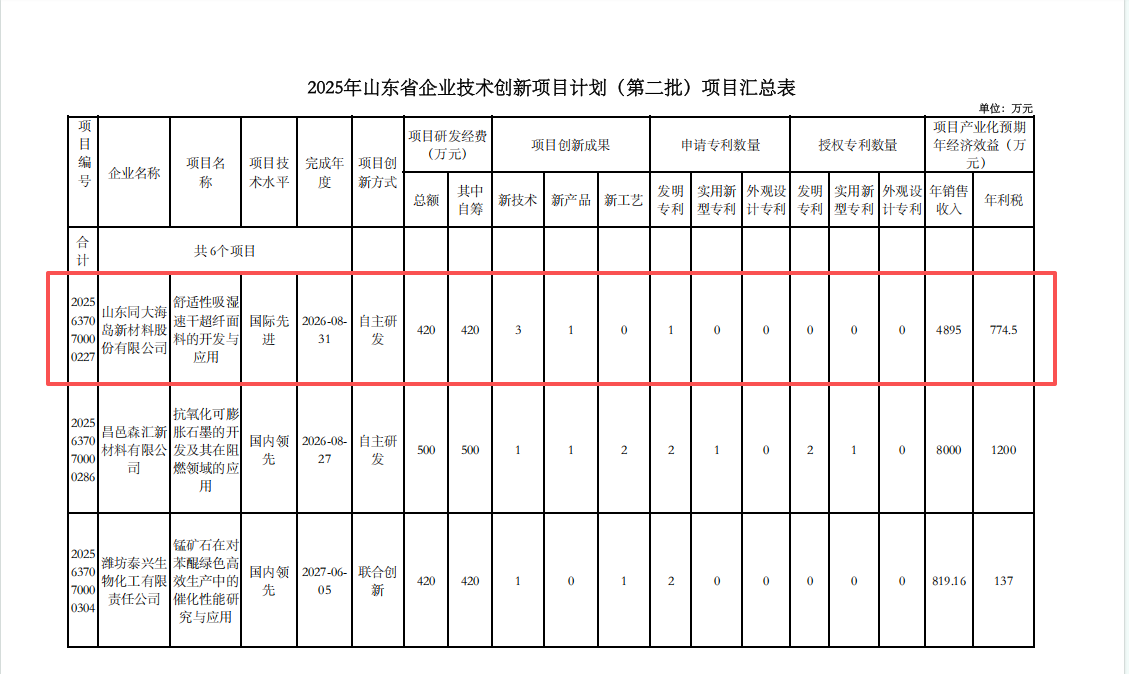 近期,同大股份(300321.SZ)凭借雄厚的科技实力、突出的创新能力,卓越的产品品质,入选“2025年山东省企业技术创新项目计划(第二批)”。